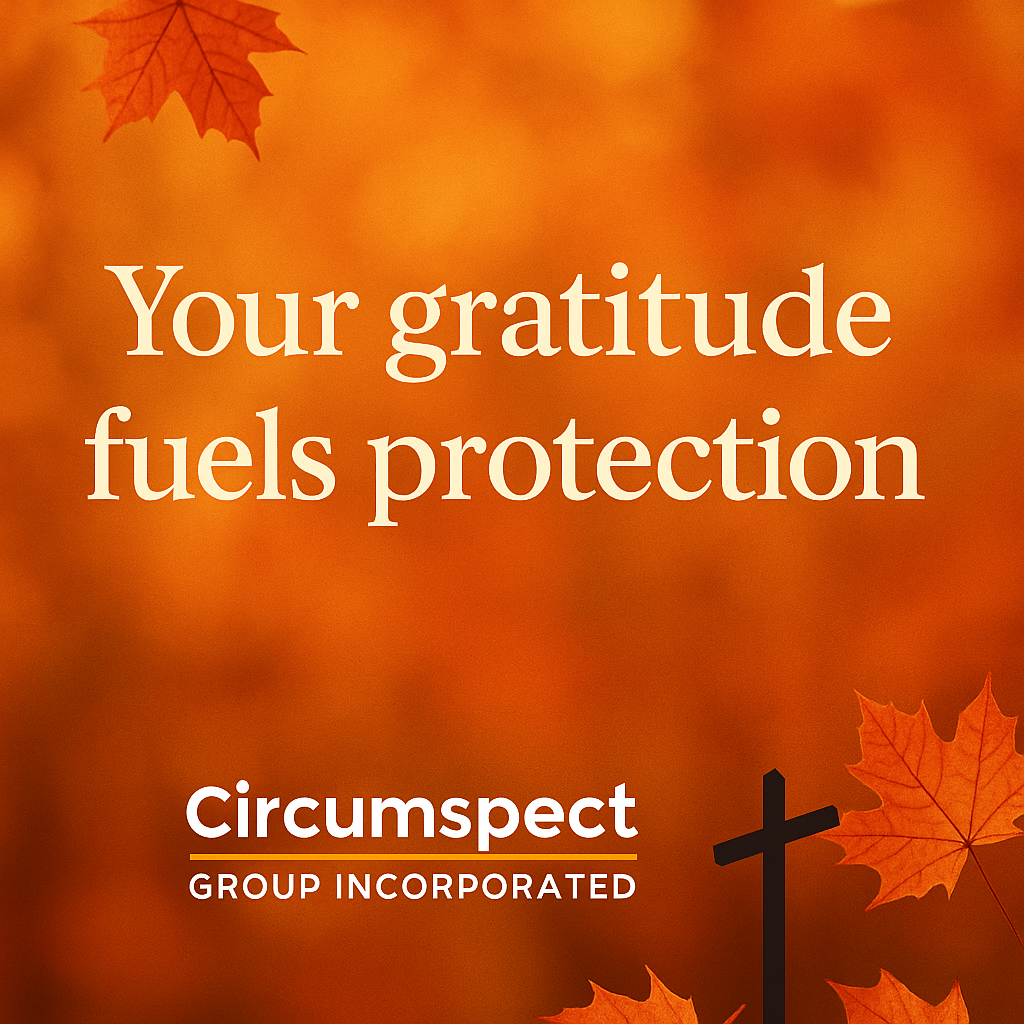 This Thanksgiving, as we gather with family and reflect on God’s goodness, we’re reminded that security is one of His greatest gifts. At Circumspect Group Inc., we see this truth every day—missionaries in uncertain regions relying on the peace that comes from preparation, intelligence, and faith.